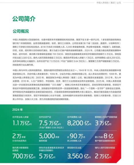 公司简介:中国人寿保险股份有限公司作为国内领先的金融保险集团核心成员,秉承“成己为人,成人达己”的核心理念,以“相知多年,值得托付”的品牌承诺深耕行业,依托2万多家分支机构及网点实现全国全覆盖。我们坚守“诚实守信、专业高效、客户至上、体验一流”的服务理念,通过“空中客服”、上门服务等多元形式,以科技赋能优化服务流程,用高质量金融服务守护人民生活幸福。